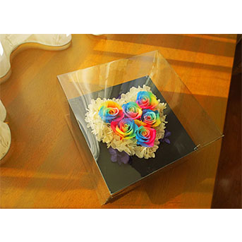 希少なレインボーローズをハートの形にかたどったキュートなプリザーブドフラワー