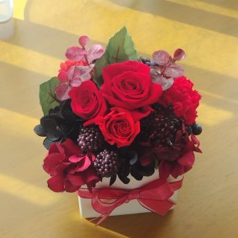 プリザーブドフラワー シースルーBOX レッドタイプ【東京のプリザーブドフラワー】