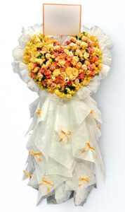 2026.03.19ハート型スタンド花|オレンジ&イエローの華やかバースデーフラワーギフト【大手町 KDDIホール】